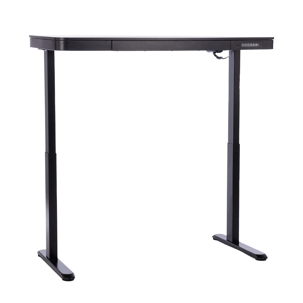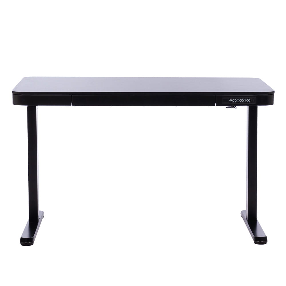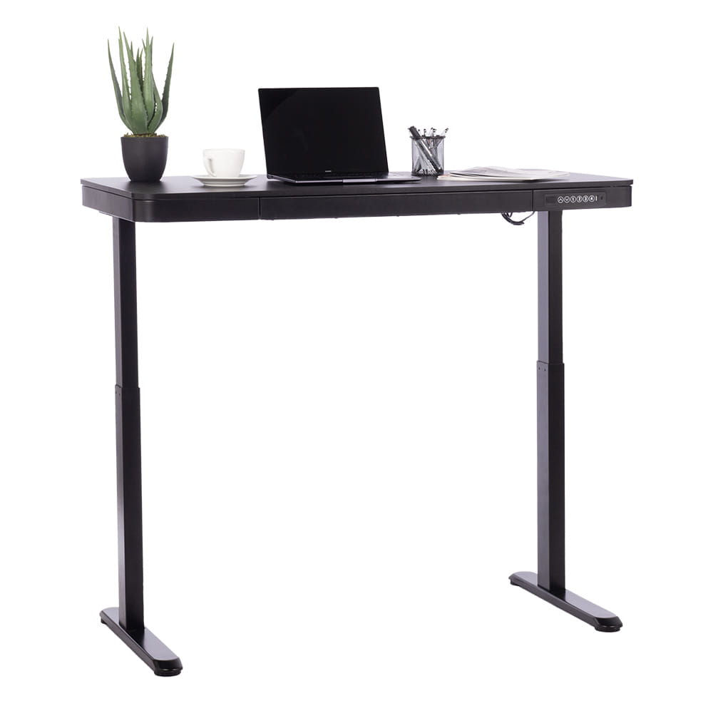 Nowoczesne biurko Ergoelite wyposażone jest w elektryczną regulację wysokości blatu, co pozwala użytkownikom dostosować je do swojej preferowanej pozycji pracy czy to siedzącej, czy stojącej. Aż 4 programy pamięci umożliwiają zapisanie ulubionych pozycji wysokości, a dzięki innowacyjnemu silnikowi biurko podczas regulacji pracuje niezwykle cicho. Mebel doskonale sprawdzi się w każdym biurze, gabinecie i pokoju ucznia. Szereg udogodnień takich jak porty USB, system antypoślizgowy czy pojemna szuflada, zapewniają komfort codziennej pracy i nauki. Dzięki wykorzystaniu w konstrukcji stali i wzmocnionego blatu, mebel posłuży niezawodnie przez wiele lat. Dla bezpieczeństwa użytkowania zastosowano odpowiednie elementy maskujące części ruchome i zasilające.