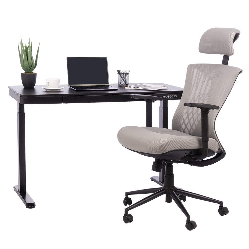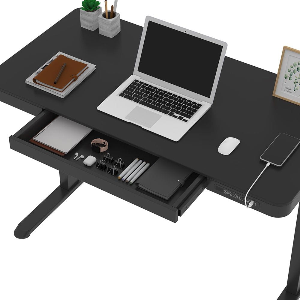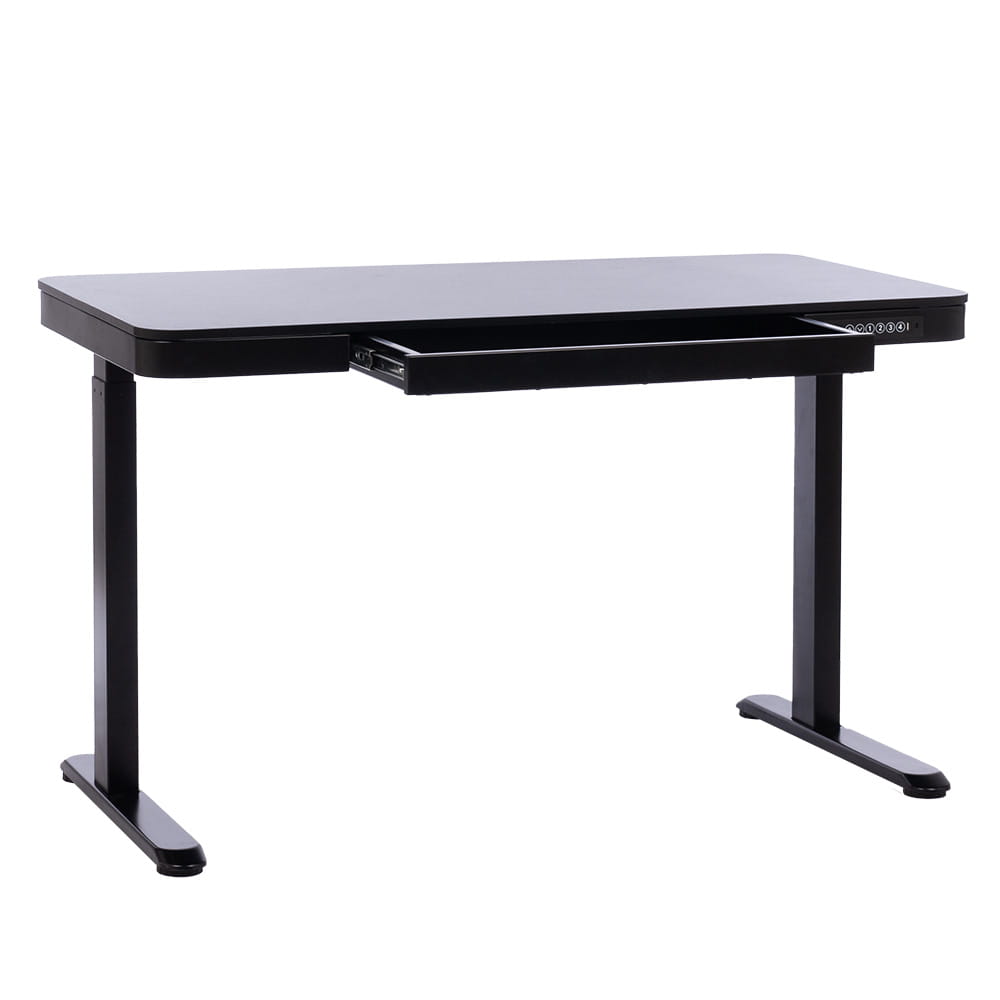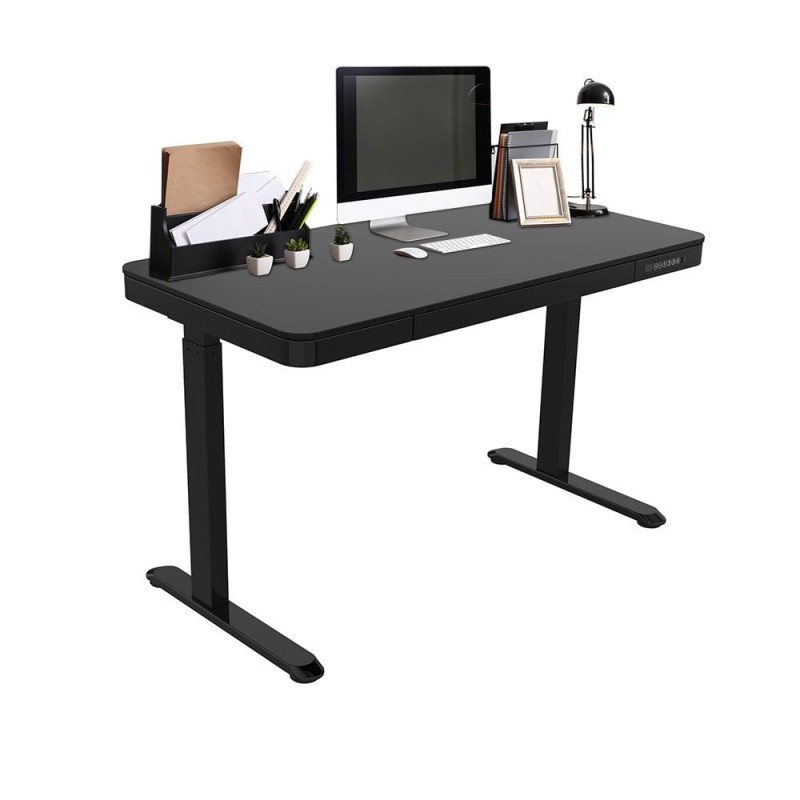 Nowoczesne biurko Ergoelite wyposażone jest w elektryczną regulację wysokości blatu, co pozwala użytkownikom dostosować je do swojej preferowanej pozycji pracy czy to siedzącej, czy stojącej. Aż 4 programy pamięci umożliwiają zapisanie ulubionych pozycji wysokości, a dzięki innowacyjnemu silnikowi biurko podczas regulacji pracuje niezwykle cicho. Mebel doskonale sprawdzi się w każdym biurze, gabinecie i pokoju ucznia. Szereg udogodnień takich jak porty USB, system antypoślizgowy czy pojemna szuflada, zapewniają komfort codziennej pracy i nauki. Dzięki wykorzystaniu w konstrukcji stali i wzmocnionego blatu, mebel posłuży niezawodnie przez wiele lat. Dla bezpieczeństwa użytkowania zastosowano odpowiednie elementy maskujące części ruchome i zasilające.