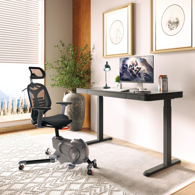 Dzięki zastosowaniu technologii pojedynczego silnika biurko Ergoelite oferuje użytkownikom płynną regulację wysokości przy zachowaniu pełnej stabilności. Co więcej, charakteryzuje się wyjątkowo cichą pracą - poniżej 50 dB, co sprzyja koncentracji i komfortowi użytkowania. Dodatkowo szybkość regulacji wynosząca 25 mm/s zapewnia sprawną i efektywną zmianę położenia blatu, umożliwiając dynamiczne dostosowanie biurka do aktualnych potrzeb użytkownika. To oznacza szybsze przejście pomiędzy pozycją siedzącą a stojącą, ale również sprawia, że biurko jest idealnym towarzyszem pracy zarówno w biurze, jak i w domowym środowisku.