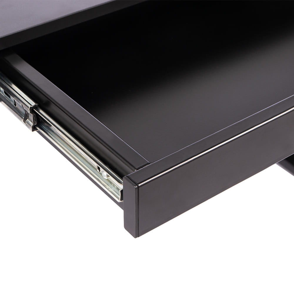 Pojemna szuflada w blacie biurka stanowi nieodłączny element wyposażenia. Dzięki niej użytkownik może przechowywać wszystkie potrzebne do pracy narzędzia i akcesoria w jednym miejscu, co sprawia, że są zawsze pod ręką i łatwo dostępne. To nie tylko praktyczne, ale także wygodne rozwiązanie, które zwiększa efektywność pracy i organizację przestrzeni biurowej.