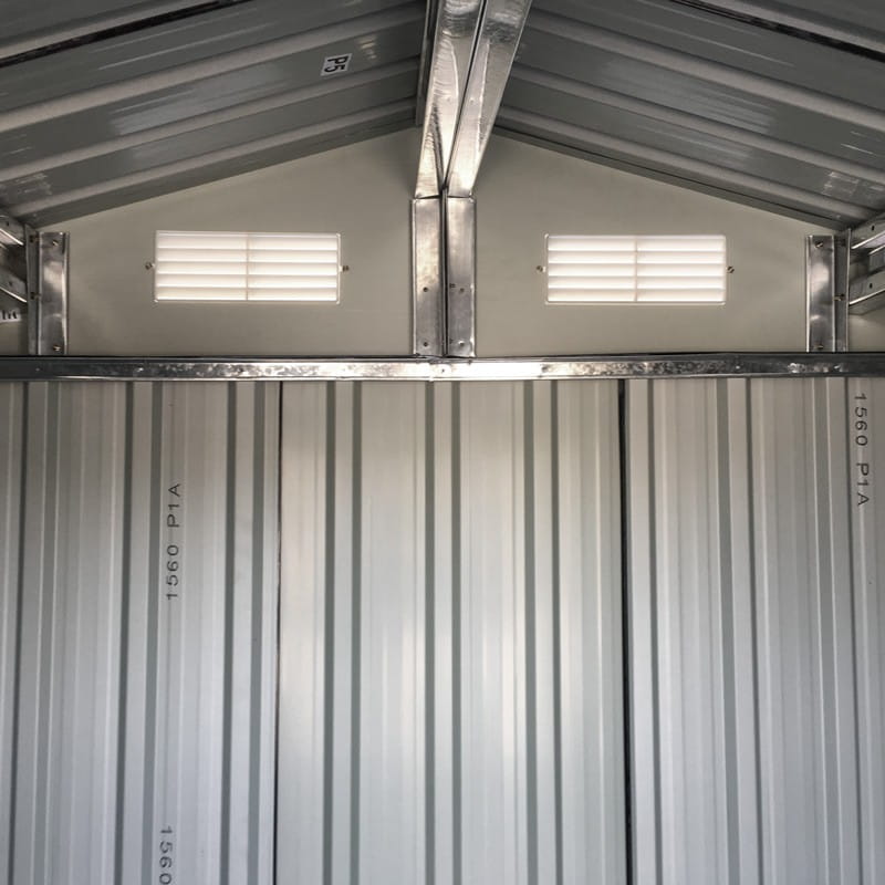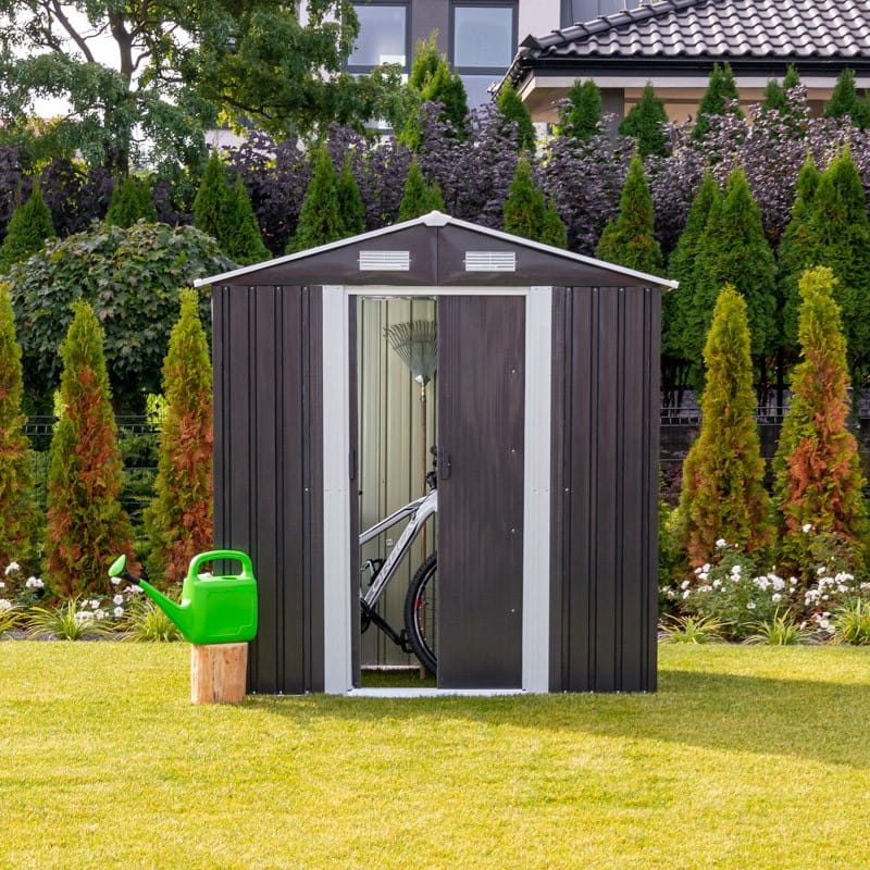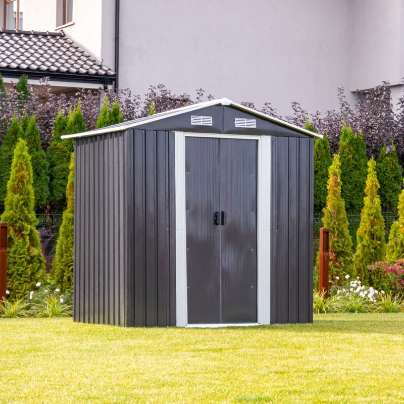 Ściany ze stali galwanizowanej zapewniają wytrzymałość blaszanego domku ogrodowego.