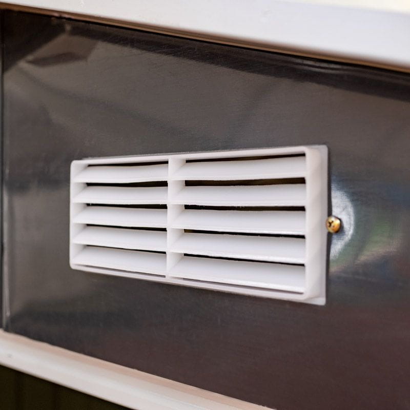 Atutem domku ogrodowego są otwory wentylacyjne umieszczone w górnej części przedniej ściany.