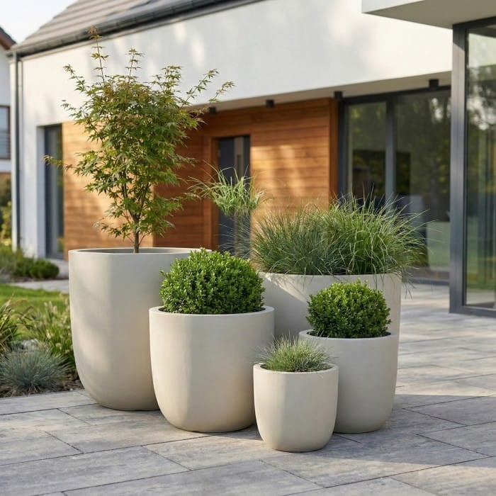 Kolekcja Ombra wyróżnia się minimalistycznym podejściem do formy. Gładka powierzchnia oraz jasny, beżowy kolor sprawiają, że donica staje się eleganckim tłem dla roślin, zamiast z nimi konkurować. To właśnie ta prostota sprawia, że model doskonale wpisuje się zarówno w nowoczesne, jak i bardziej klasyczne aranżacje ogrodowe czy wnętrzarskie. Można ją zestawiać z innymi donicami z tej samej serii, tworząc spójną, wielopoziomową kompozycję.
