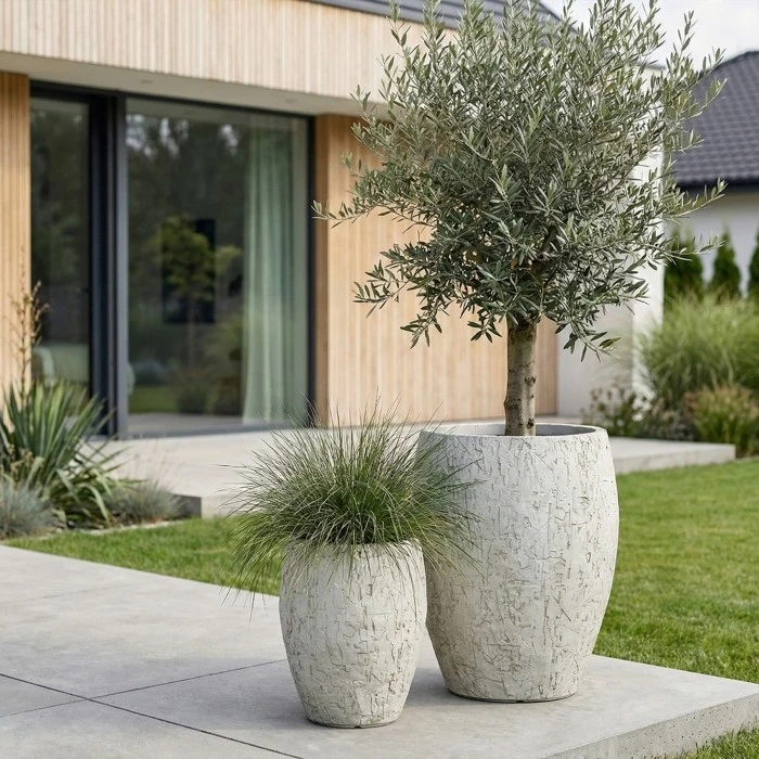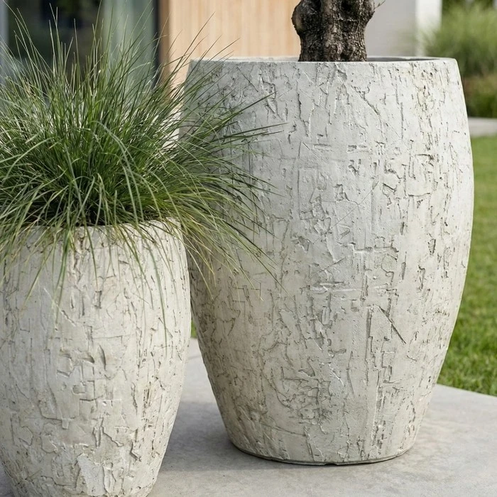 Donica wyróżnia się wyrazistą, strukturalną powierzchnią, która nadaje jej unikalny i dekoracyjny charakter. Jasna kolorystyka doskonale współgra z zielenią roślin oraz materiałami takimi jak drewno, beton czy kamień, wpisując się w nowoczesne i naturalne aranżacje.
