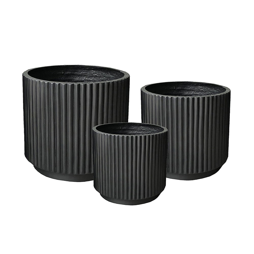 Zestaw donic NOCTURA to stylowe rozwiązanie dla osób, które chcą stworzyć spójną aranżację roślinną w ogrodzie lub na tarasie. Trzy donice o zróżnicowanych rozmiarach i ryflowanej powierzchni umożliwiają tworzenie ciekawych kompozycji roślinnych, zarówno z kwiatów sezonowych, jak i traw ozdobnych czy niewielkich krzewów.