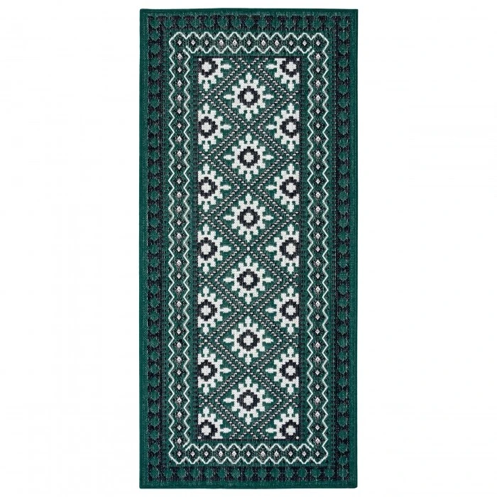 Dywan zewnętrzny Jussi wyróżnia się bogatym, geometrycznym wzorem inspirowanym motywami etnicznymi i folkowymi. Charakterystyczna ramka oraz powtarzalne elementy tworzą spójną, dekoracyjną kompozycję, która przyciąga wzrok i nadaje przestrzeni wyjątkowego charakteru. To idealny wybór do aranżacji w stylu boho, skandynawskim lub naturalnym, gdzie liczy się detal i przytulna atmosfera.