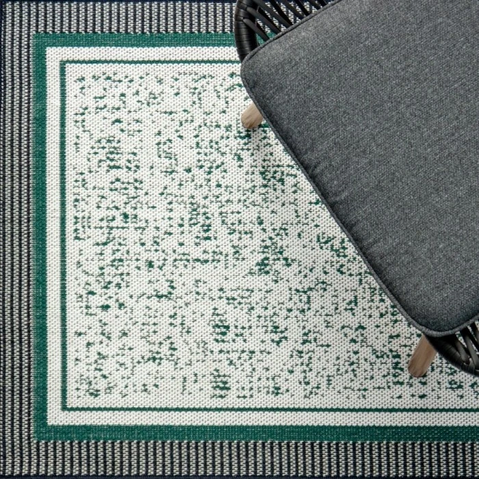 Dywan zewnętrzny Mio wyróżnia się wzorem inspirowanym tradycyjnymi dywanami dekoracyjnymi, uzupełnionym o efekt delikatnego przetarcia. Charakterystyczna ramka oraz nieregularny motyw nadają mu elegancki, lekko vintage’owy wygląd, który ociepla przestrzeń i dodaje jej przytulności. To doskonały wybór dla osób, które chcą stworzyć bardziej „domową” atmosferę na tarasie lub balkonie.