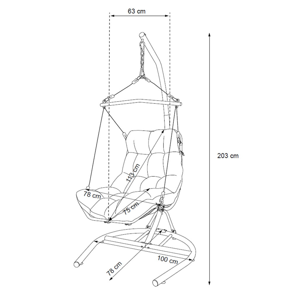 - fotel wiszący wyposażony jest w obszerną poduszkę, która zapewnia komfortowy relaks