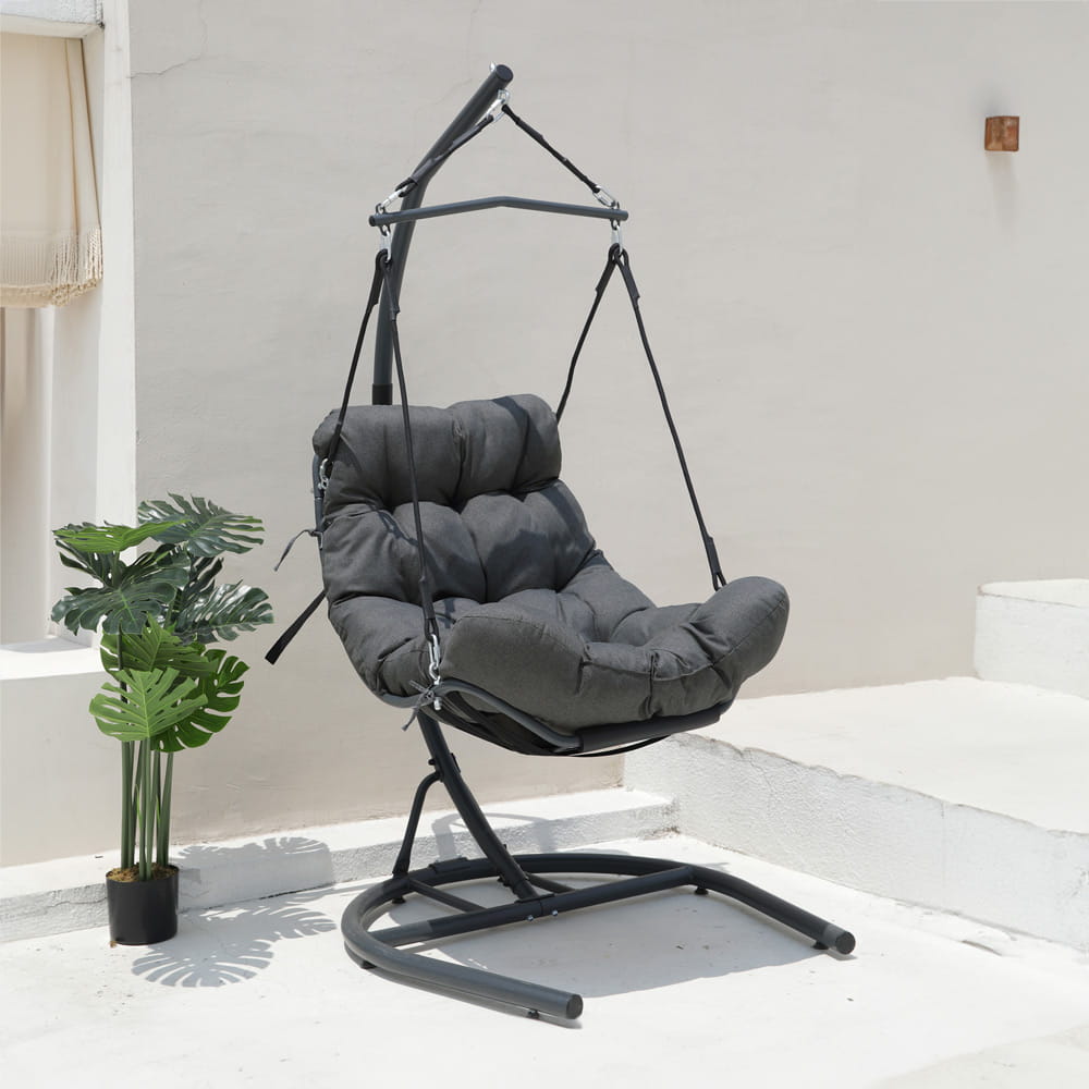 FOTEL WISZĄCY VIBE ANTRACYTOWY Z OBSZERNĄ PODUSZKĄ