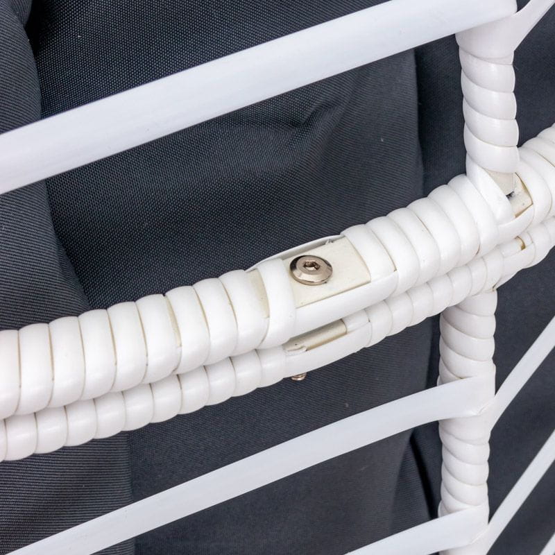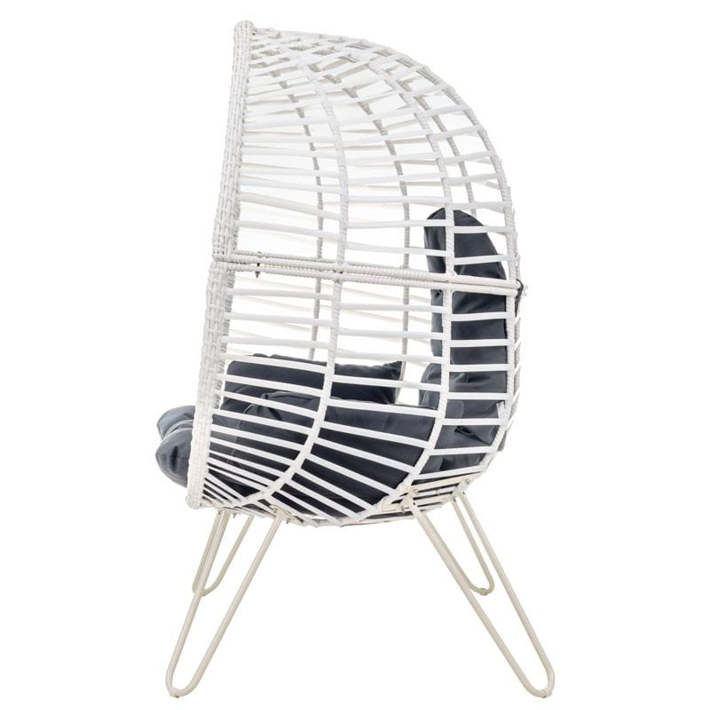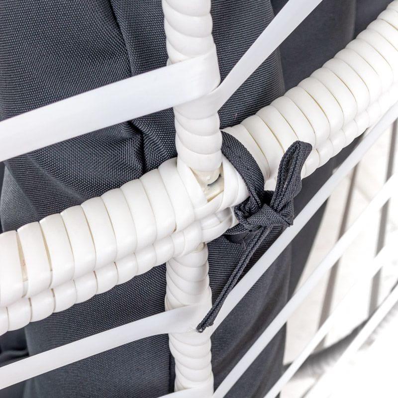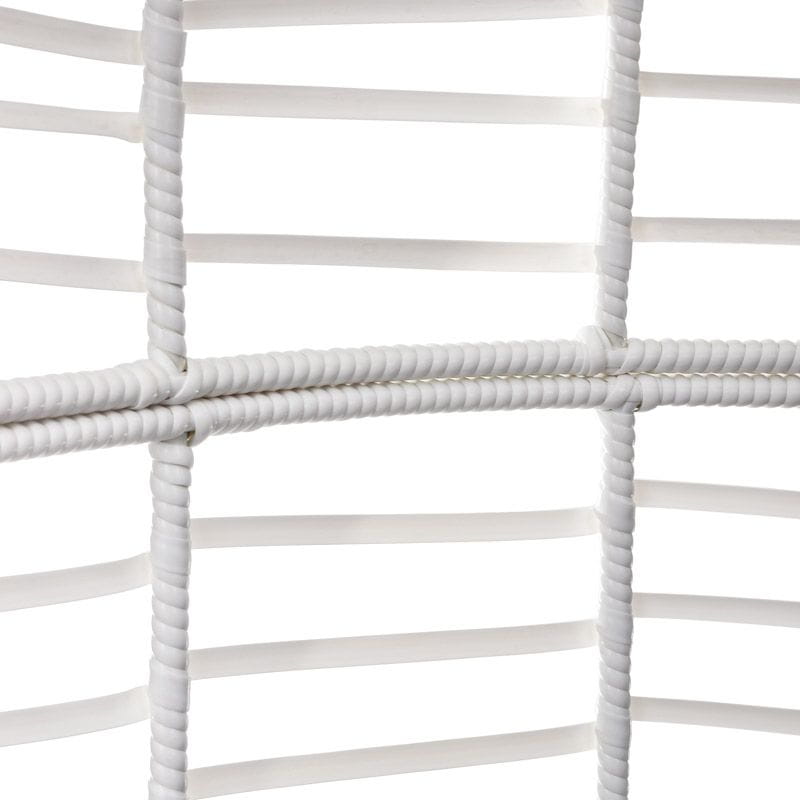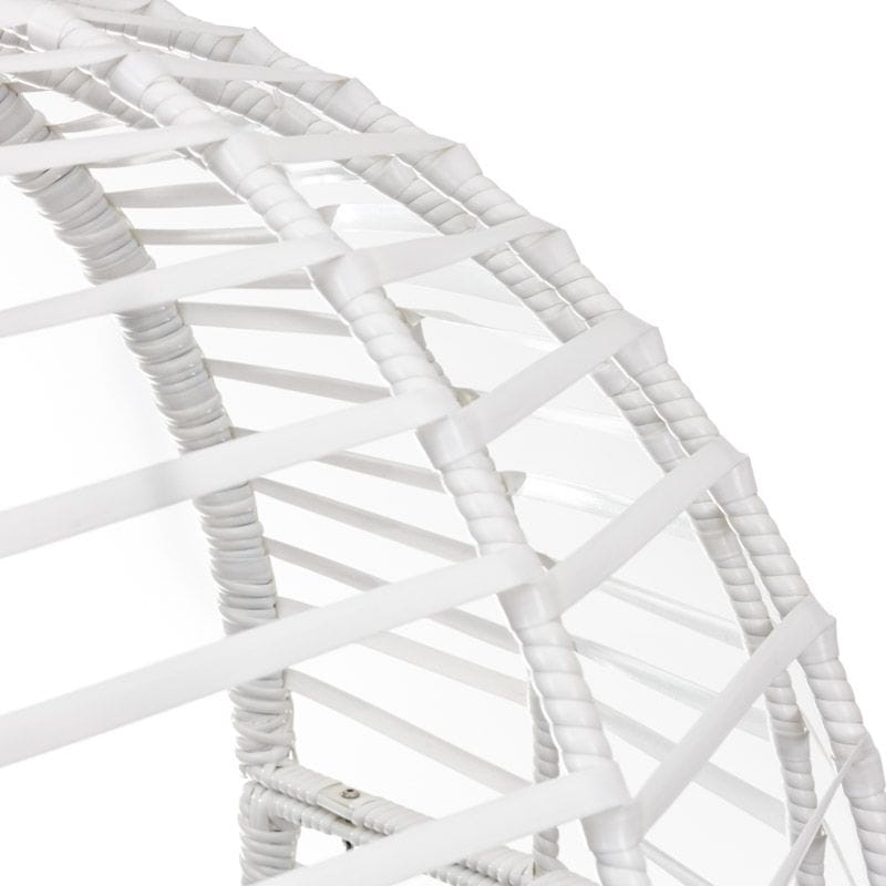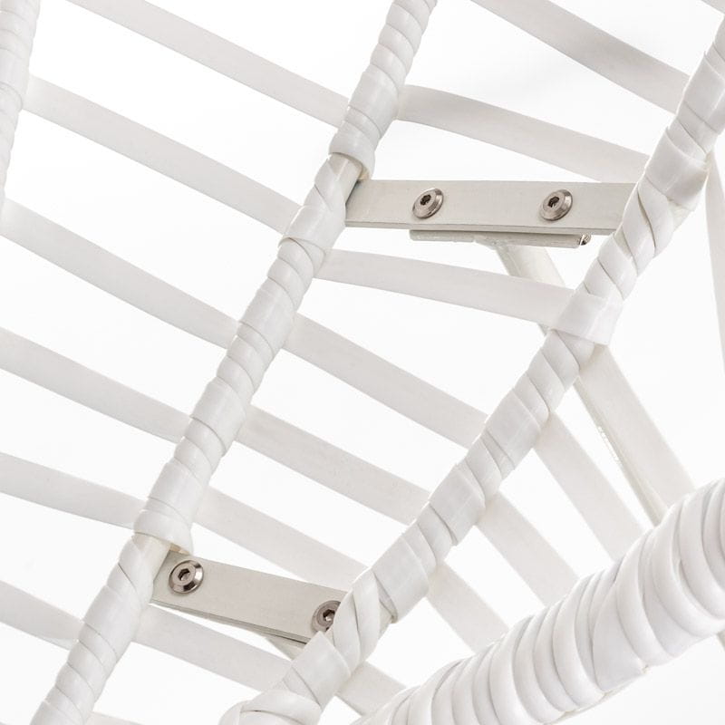Rama fotela do salonu została wykonana ze stali, dzięki czemu konstrukcja nie odkształca się zachowując swój kształt. Płaska plecionka polirattanowa w kolorze białym nadaje charakteru, pozwalając tym samym na szerokie możliwości aranżacyjne.