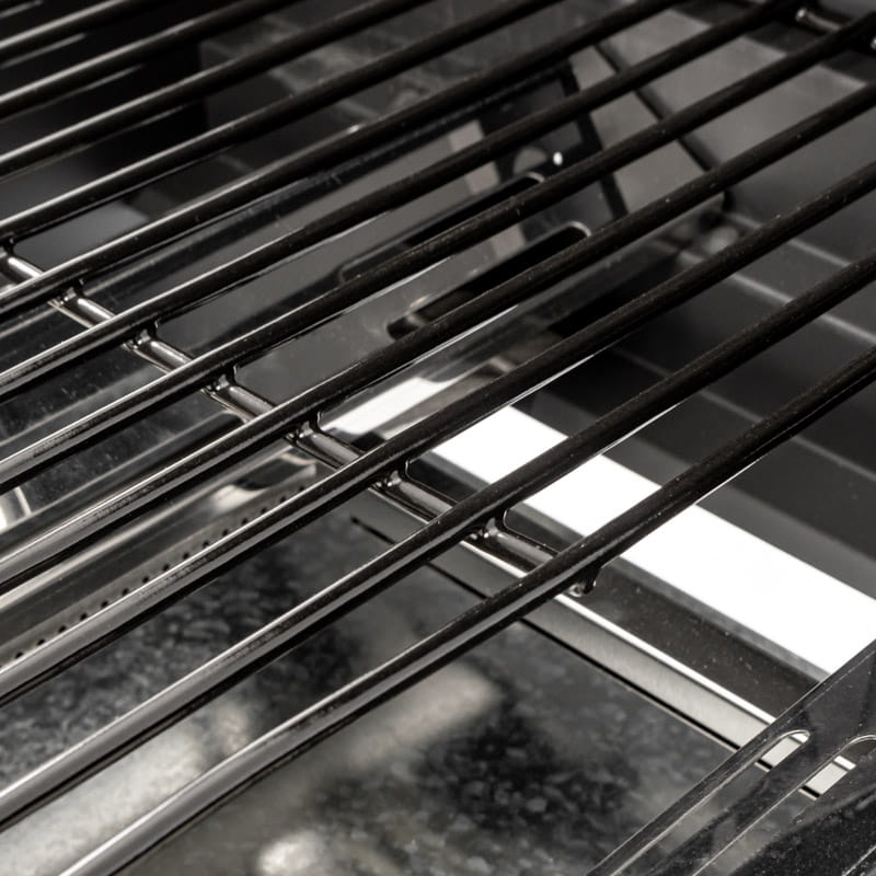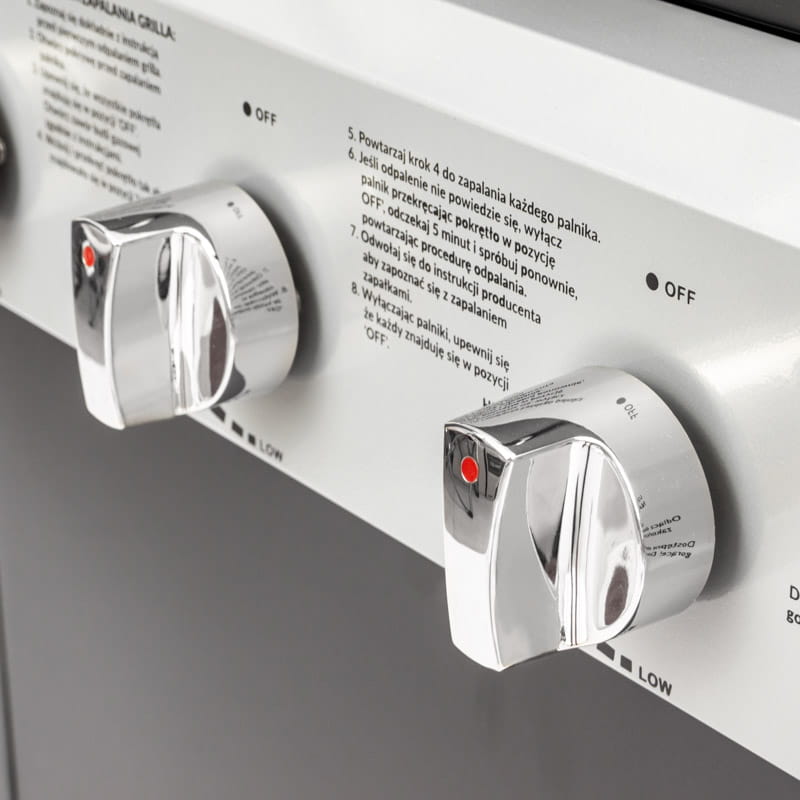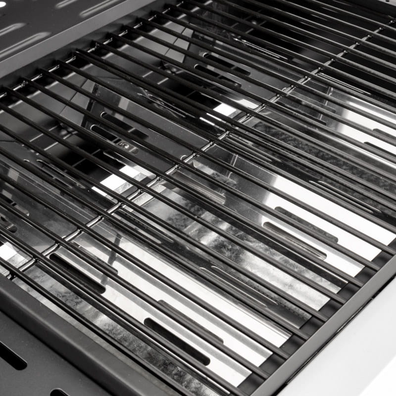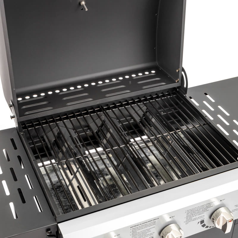 Grill gazowy został wyposażony w liczne funkcjonalne rozwiązania, co czyni go niezwykle praktycznym i efektywnym. Dzięki zastosowanej w konstrukcji pokrywie z termometrem proces smażenia staje się bardziej efektywny. Utrzymanie optymalnej temperatury na ruszcie gwarantuje doskonale wysmażone i soczyste potrawy. Szybko nagrzewający się żeliwny ruszt sprawnie przewodzi temperaturę, co przekłada się na wygodę podczas smażenia i wysoką jakość gotowych dań. Szafka z drzwiczkami umożliwia porządkowanie akcesoriów, ale także estetyczne schowanie butli gazowej. W zestawie znajduje się również reduktor niezbędny do bezproblemowego podłączenia butli gazowej. Konstrukcja grilla ogrodowego, wykonana ze stali malowanej proszkowo, zapewnia mu trwałość.
