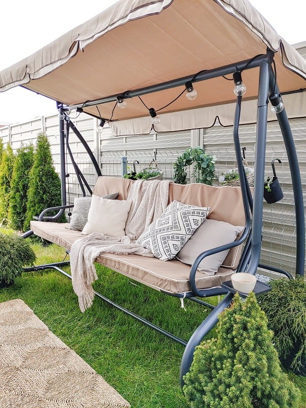 BEŻOWA HUŚTAWKA OGRODOWA MEGI Z DASZKIEM