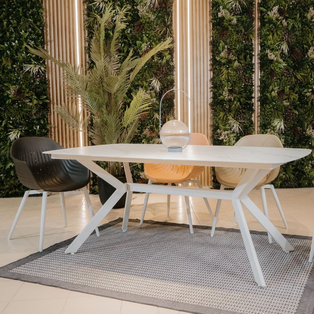 Rama krzesła to solidna konstrukcja wykonana z aluminium malowanego proszkowo. To nie tylko zapewnia ochronę przed warunkami atmosferycznymi, ale także nadaje elegancki wygląd. Białe nogi krzesła pokryte technologią Transfer Print dodają subtelności i nowoczesności, sprawiając, że mebel staje się nie tylko praktycznym elementem ogrodu, ale także designerskim akcentem, który wyróżnia przestrzeń.