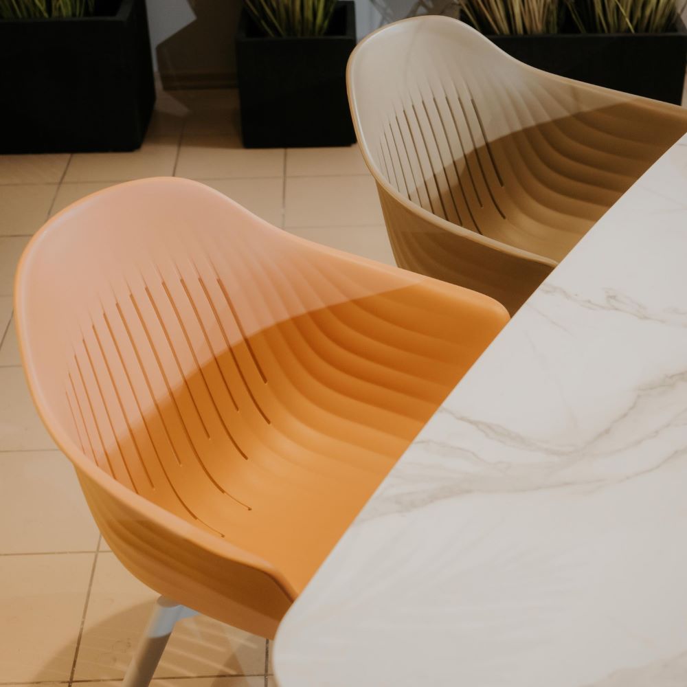 Wyjątkowe krzesło ogrodowe nie tylko zachwyca elegancją, ale również posiada certyfikat Global Recycled Standard (GRS), potwierdzający zrównoważone podejście do środowiska. Siedzisko zostało wykonane z tworzywa sztucznego pochodzącego z recyklingu, co sprawia, że jest nie tylko wygodne, ale również przyjazne dla środowiska.