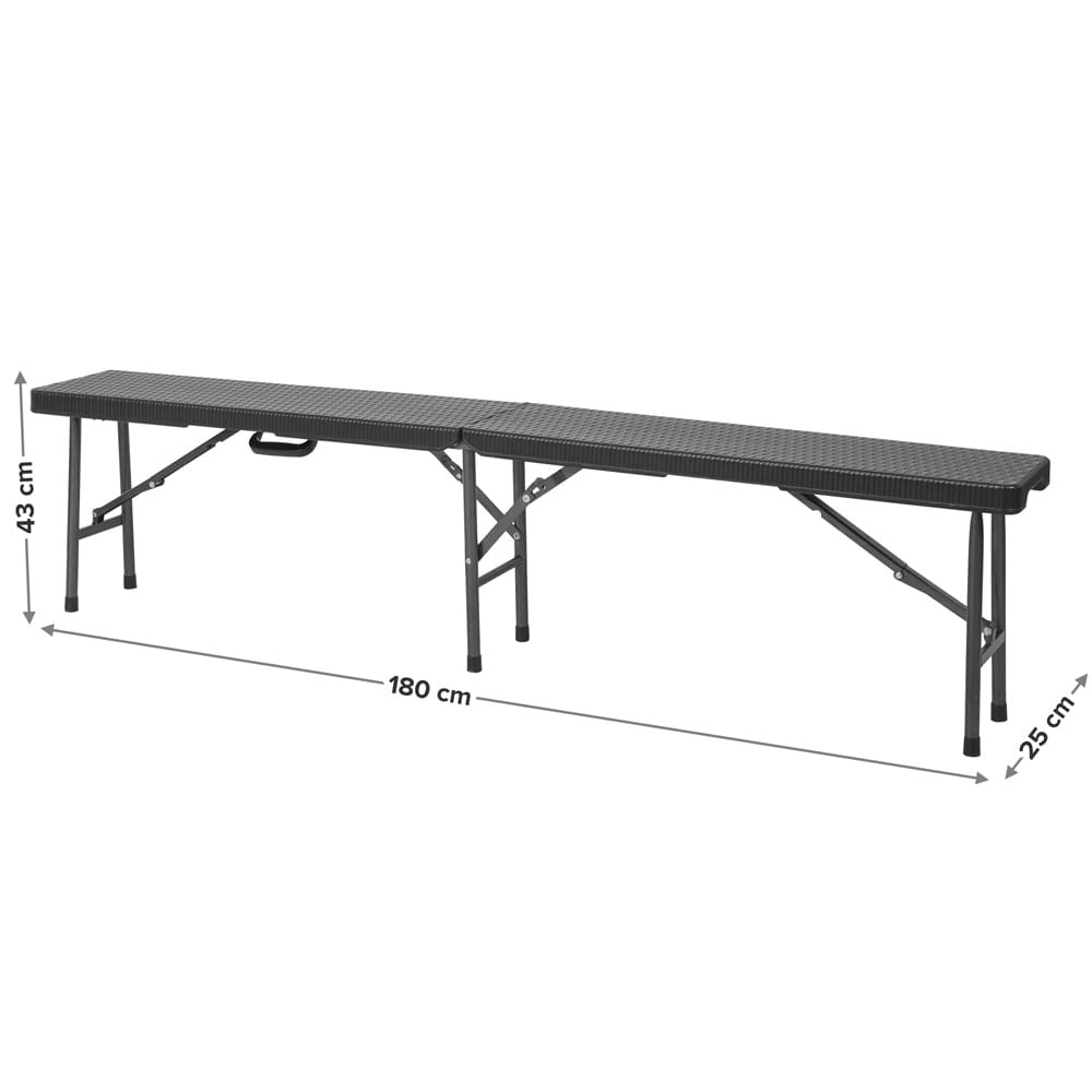 Siedzisko lekkiej ławki cateringowej wykonane jest z tworzywa HDPE z rattanowym wzorem, natomiast do wykonania konstrukcji ławki ogrodowej zastosowano stal. Dzięki zastosowanym materiałom ławka cateringowa składana jest przystosowana do bezproblemowego przenoszenia w dowolne miejsce. Mebel przyda się w wielu sytuacjach - podczas spotkań na świeżym powietrzu, przyjęć i imprez.