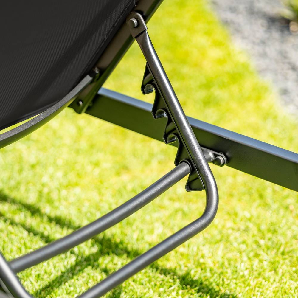 Dodatkowym atutem leżaka jest odpowiednie naprężenie materiału siedziska, dzięki czemu odpoczywanie jest komfortowe. Zastosowany materiał textilene umożliwia cyrkulację powietrza pomiędzy oparciem a plecami, co ma szczególne znaczenie w upalne dni.