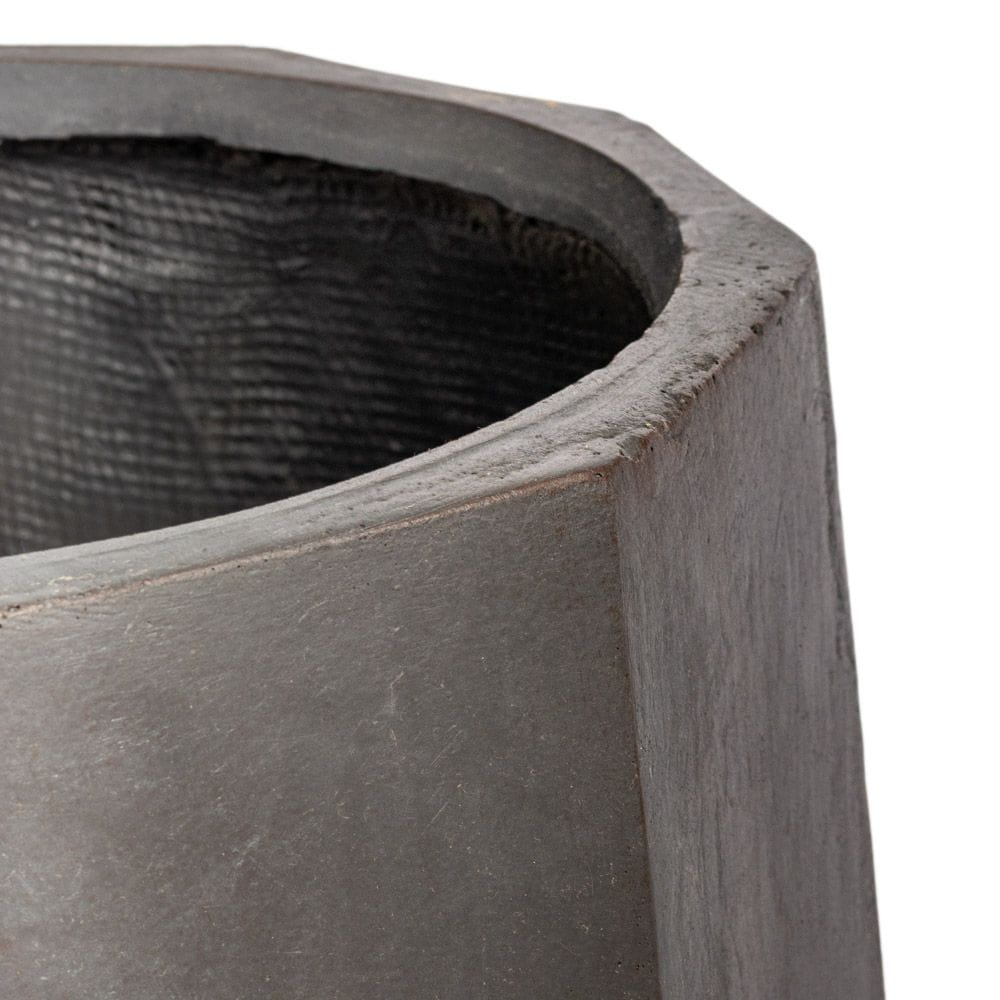 Nowoczesna duża donica ogrodowa wyróżnia się eleganckim, geometrycznym wzornictwem. Stanowi doskonałą ozdobę zarówno na taras, balkon, jak i do ogrodu. Świetnie sprawdzi się w nowoczesnych aranżacjach przestrzeni do wypoczynku na świeżym powietrzu. Jej szary kolor pięknie harmonizuje z najnowszymi trendami w aranżacjach zewnętrznych.