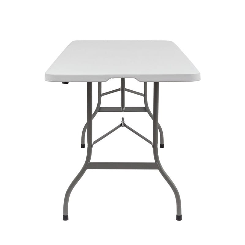 Długi stół bankietowy ma blat wykonany z HDPE w kolorze białym. Konstrukcja stołu została wyprodukowana z stalowych rurek o średnicy 25x0,9mm oraz 19x1mm. Dzięki zastosowanym materiałom stół jest przystosowany do bezproblemowego przenoszenia w dowolne miejsce.