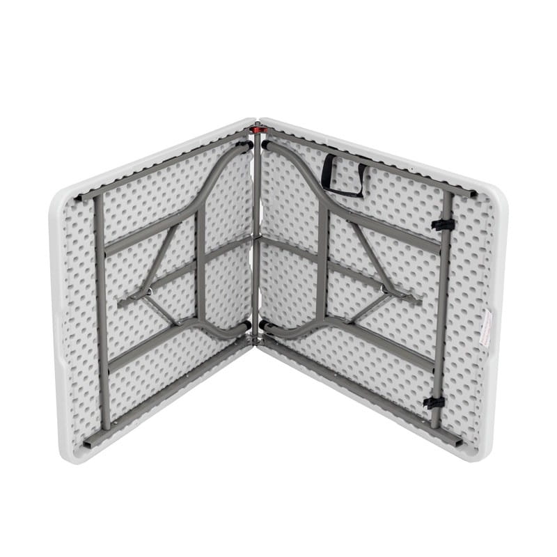 Stół jest lekki i ma rączkę oraz możliwość składania, co pozwala na bezproblemowe przeniesienie go w dowolne miejsce. Stół cateringowy szybko się rozkłada i jest łatwy w przechowywaniu, dzięki czemu sprawdza się, gdy zajdzie potrzeba szybkiego zorganizowania dodatkowych miejsc. Wyprofilowana konstrukcja stołu przewiduje miejsce na nogi, co znacznie podnosi komfort siedzenia.