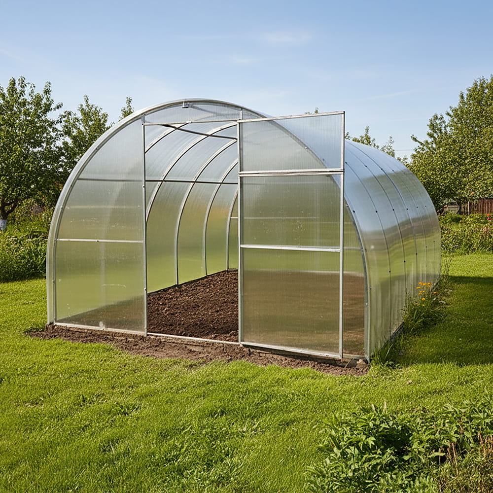 Szklarnia Afrodyta o szerokości 3 m z poliwęglanu o grubości 4 mm. Specjalnie zaprojektowana dla profesjonalnych ogrodników i pasjonatów ogrodnictwa. Ta ogromna szklarnia oferuje rozległą przestrzeń, idealną do uprawy roślin.