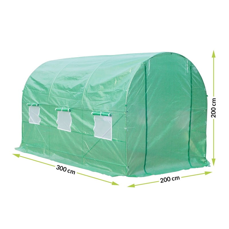 Nowoczesna szklarnia foliowa ma zwijane drzwi z suwakiem, co znacznie podnosi komfort użytkowania. Atutem jest 6 okien z siatką, które zapewniają cyrkulację powietrza przy jednoczesnej ochronie przed niechcianymi insektami.