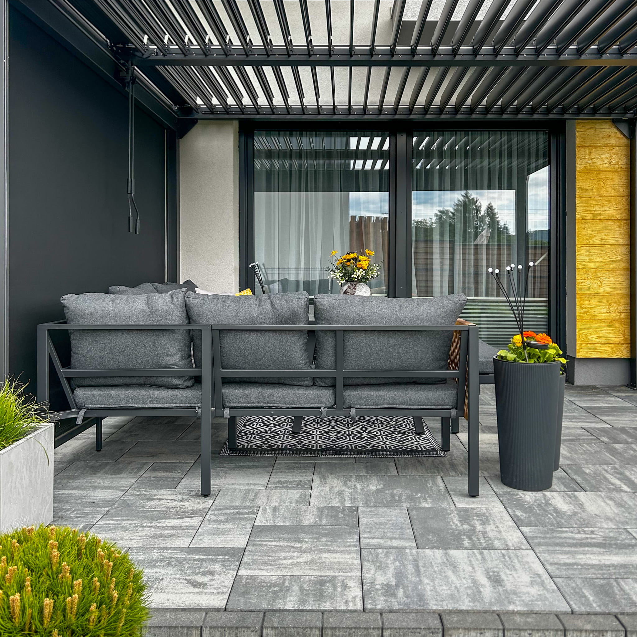 - rama z aluminium przekłada się na trwałość mebli, cechuje się wysoką odpornością na korozję, co świetnie sprawdza się w użytkowaniu na zewnątrz
