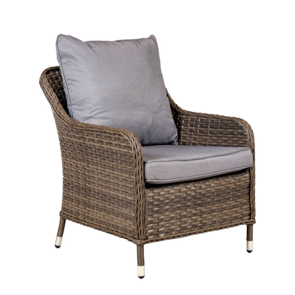 Miękkie poduszki dołączone do zestawu zwiększają komfort użytkowania. Nowoczesny design sprawia, że meble doskonale wpasują się w każdą przestrzeń ogrodową lub tarasową.