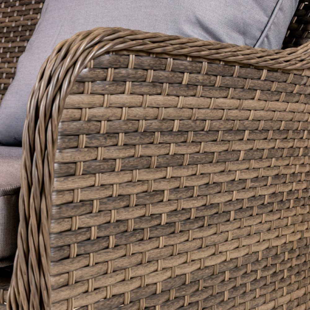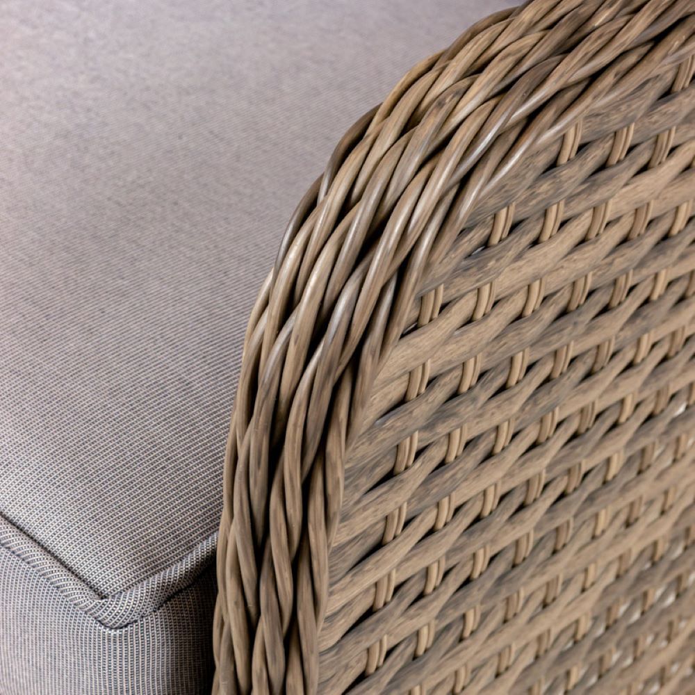 Meble rattanowe wyposażone są w poduszki na siedzisko oraz oparcie, co znacznie podnosi komfort siedzenia. Dodatkowym atutem jest wyposażenie poduszek w zamek błyskawiczny, co pozwala na bezproblemowe odświeżenie elementów.
